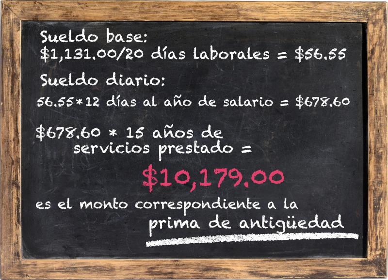 1. Luego de 15 años de servicios prestados, un trabajador que percibe un sueldo base de $1131.00 renuncia voluntariamente. Calcula el monto de la prima de antigüedad.