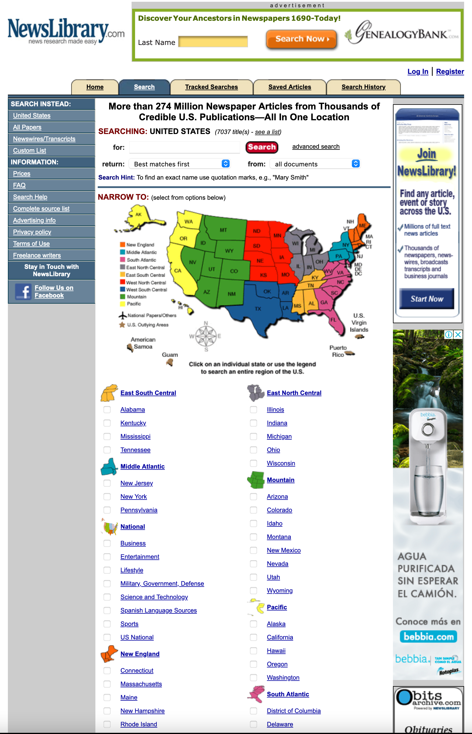 NewsLibrary.com: http://nl.newsbank.com Ofrece noticias publicadas en diarios estadounidenses. |