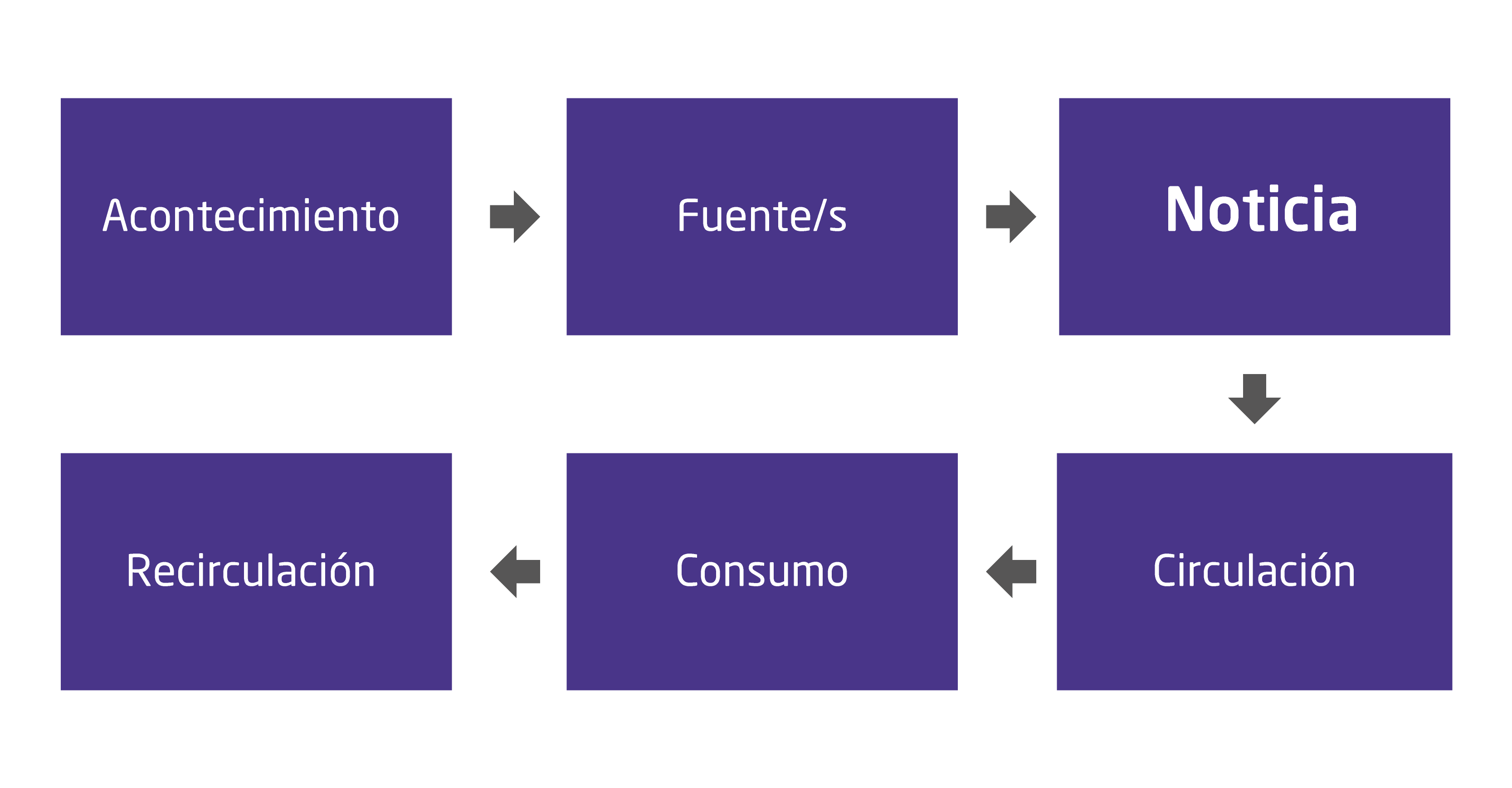 Circulación. La noticia producida circula a través de uno o varios medios. Puede presentarse a través de palabras impresas en un diario de papel, por medio de la voz de un informador de radio, o mediante un mensaje audiovisual en un noticiero de televisión. Hoy día, ese sencillo ecosistema de medios informativos se ha multiplicado en internet, no solo con las versiones digitales de los medios de comunicación tradicionales, sino con muchos otros medios nuevos cuya existencia es exclusivamente digital y en línea.