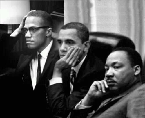 Revisemos esta fotografía. ¿Notas algo extraño? En ella hay tres figuras de la política estadounidense que son afrodescendientes: Malcolm X, el expresidente Obama y Martin Luther King. Resulta imposible que aparezcan juntas en una imagen, pues Malcolm X murió en 1965 y Martin Luther King en 1968; además, en los sesenta Obama era apenas un niño, por lo que tendría que haber viajado en el tiempo para fotografiarse al lado de los otros dos emblemáticos personajes.