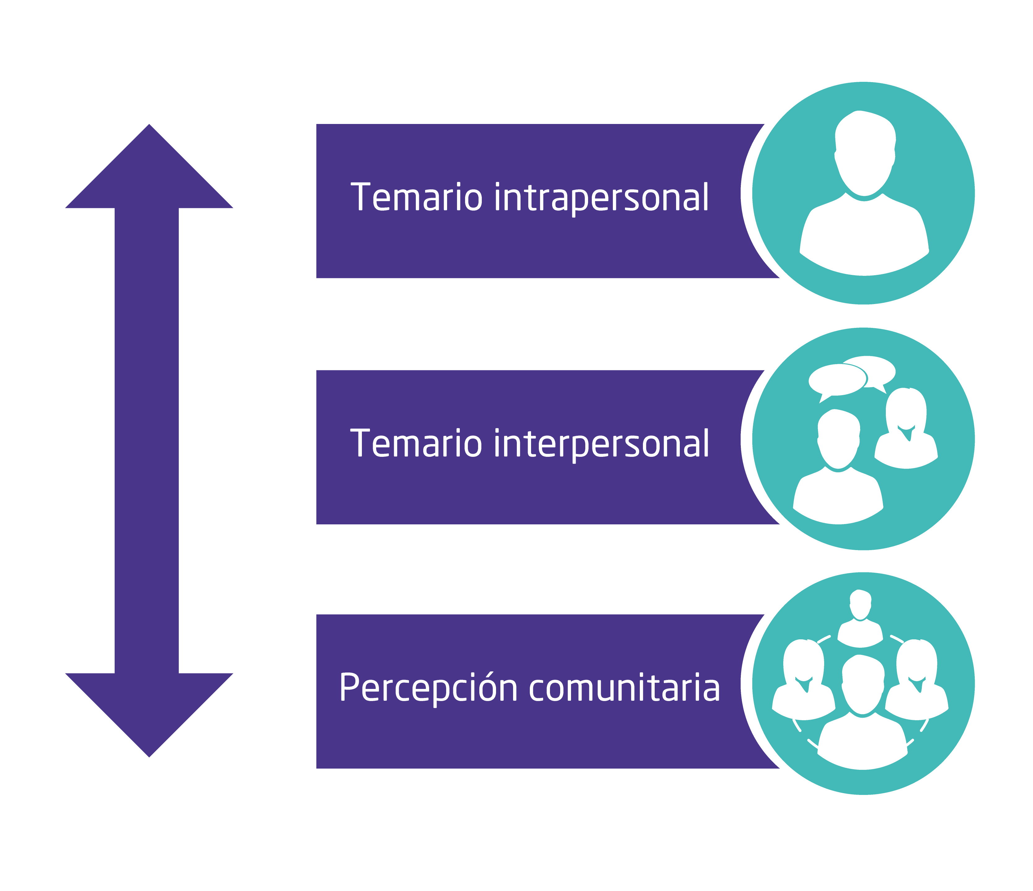 Siguiendo a Rodrigo Alsina (1993, p. 81), la teoría de la construcción del temario distingue tres manifestaciones del temario público: el temario intrapersonal: los temas importantes para cada persona; el temario interpersonal: lo que cada persona habla más con otras; y, el de la percepción comunitaria (perceived community): lo que cada persona piensa que es importante para la generalidad de las personas.